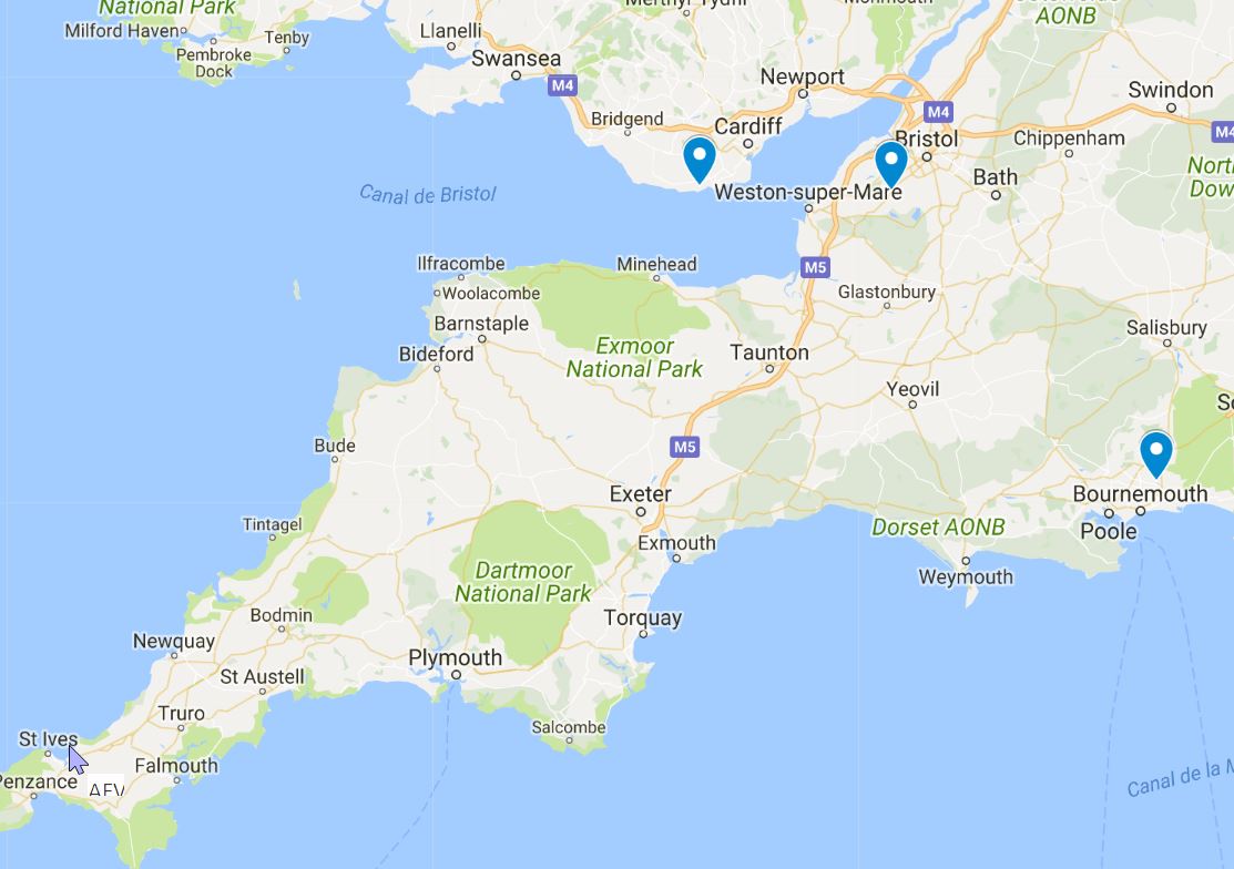 En los condados de DEVON, DORSET y KENT.