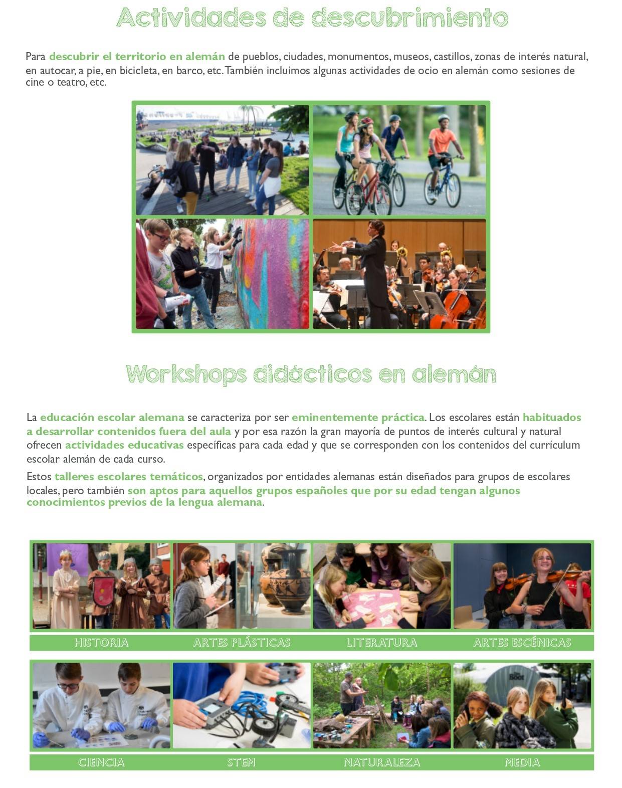 Ofrecemos una gran variedad de actividades en alemán de interés escolar clasificadas en función de la distancia al alojamiento: locales, regionales o nacionales.